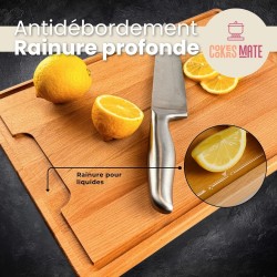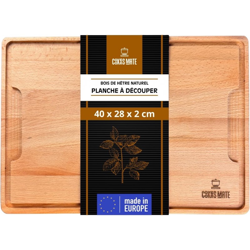 Fabriqué dans l'UE : nos planches à découper en bois sont fabriquées dans l'Union européenne à partir de bois de hêtre naturel issu de forêts européennes. Chaque planche à découper professionnelle est conforme aux normes de qualité et de sécurité alimentaire. Sans produits chimiques et traité à la vapeur pour garantir résistance et hygiène.