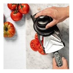 Grâce aux micro-dentelures de la lame et son angle de 19,3°, la mandoline assure une coupe aisée et précise de tous les fruits et légumes, y compris les plus tendres comme les tomates, préservant ainsi parfaitement leur texture.