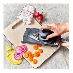 La mandoline de cuisine Kobra est reconnue pour son excellence en coutellerie, elle dispose d'une lame en acier inoxydable fabriquée à Thiers, complétée par une construction en polypropylène robuste.