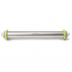 Ce rouleau à pâtisserie permet en fonction de la bague de couleur mise, de faire une pâte d'épaisseur constante.