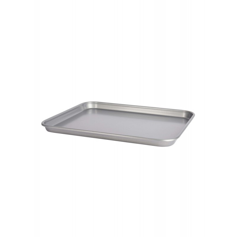 Plaque de pâtisserie en acier robuste avec revêtement anti-adhésif.