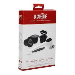 Kit contenant 3 capsules à café, une cuillère mesure et une brossette.
